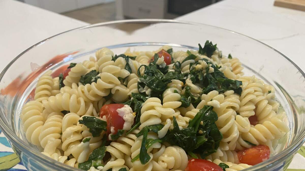 Lower the heat and add in the cheese, pasta and pasta water if necessary and combine.